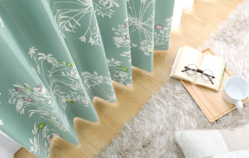 【ポイント最大10倍キャンペーン!】1cm刻みのカーテン オーダー オーダーカーテン 2枚組 2枚セット 1枚 片開き 北欧 グリーン 緑スミノエ デザインライフ 〜クッカ〜 ブルーグリーン遮光 北欧【代引き不可】
