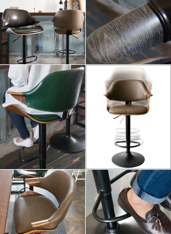 商品名バーチェア Gracia(グラシア) サイズ幅56×奥行き50×高さ91〜112cm(座面高:62〜83cm) 材質張地:合成皮革(PU)、ウレタン天然木突板貼り合板(ラッカー塗装)スチール(粉体塗装) 重量9kg 備考組立式(約15分)